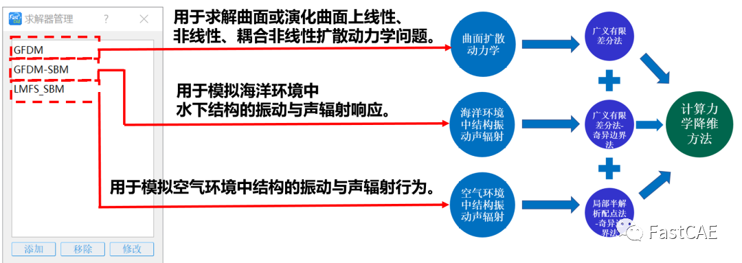 因此,团队开发一套基于计算力学降维方法的开源求解器,并结合FastCAE平台,以建立可简单高效求解曲面扩散动力学和结构振动声辐射等问题的国产化自主软件。