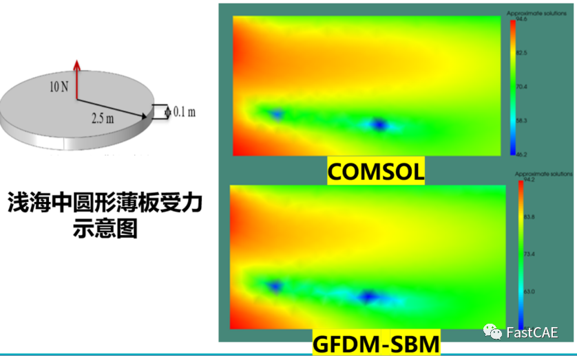 以浅海中圆形薄板振动作为仿真算例,通过与有限元软件COMSOL Multiphysics的仿真结果进行比较,验证了广义有限差分法-奇异边界法的有效性和精确性。