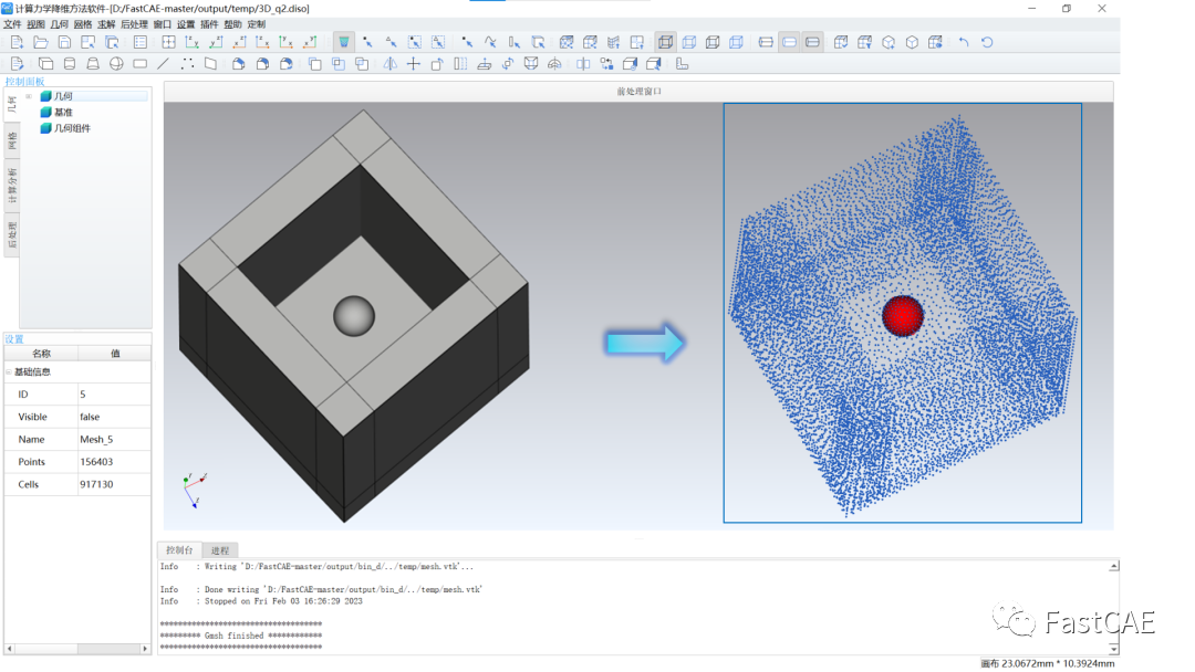 因为求解器采用都是无网格数值方法,在前处理时只需要明确节点的信息而不需要明确网格之间的关联信息,故仿真流程中需要读取节点信息进行建立离散数值模型。