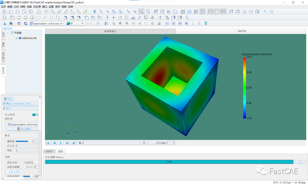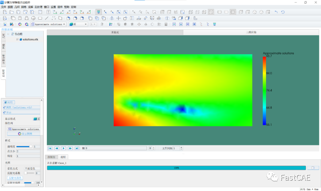 后处理使用的是FastCAE集成的VTK组件,用于仿真结果的展示。