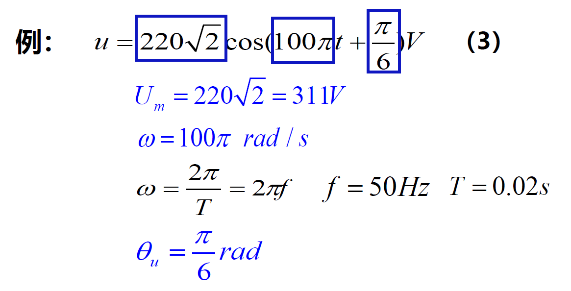 正弦量的三要素:实际上,正弦量的变化规律由幅值(最大值或振幅),频率(角频率或周期)和初相位确定