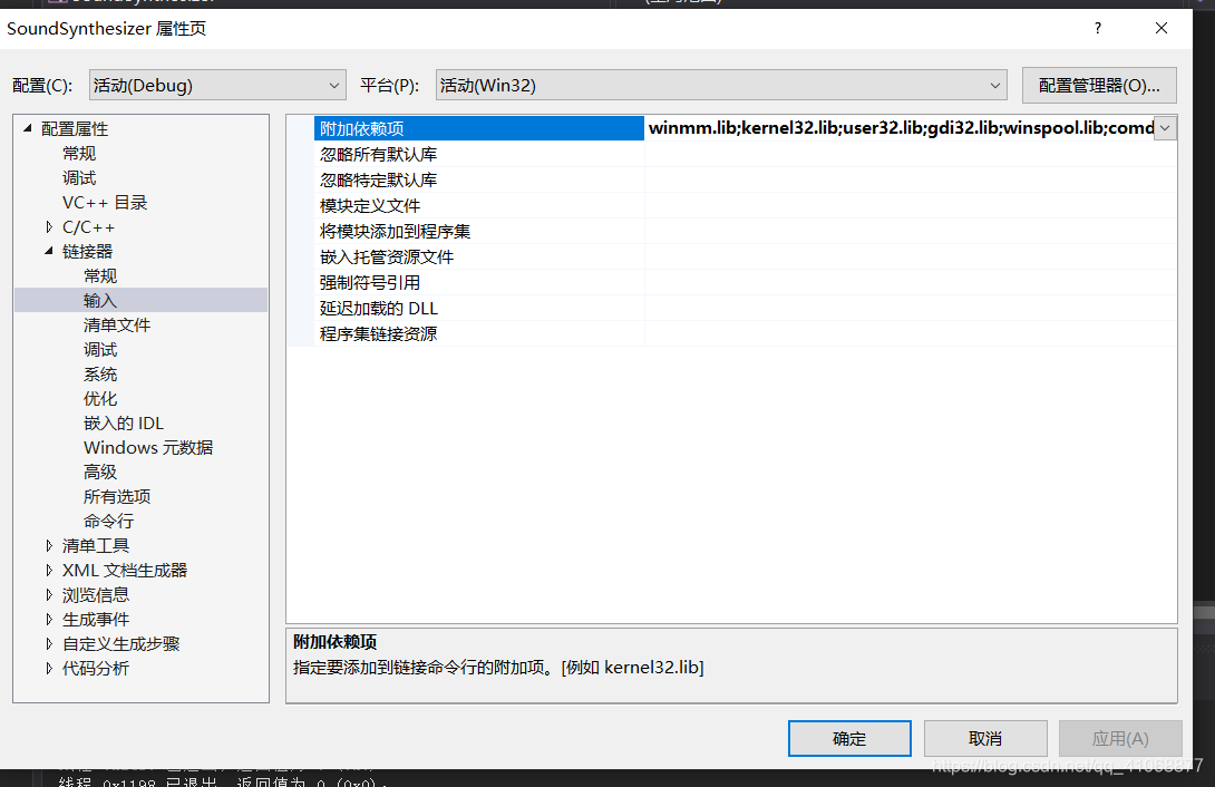 1.创建空工程,设置工程属性。链接器--输入--附加依赖项中添加winmm.lib;