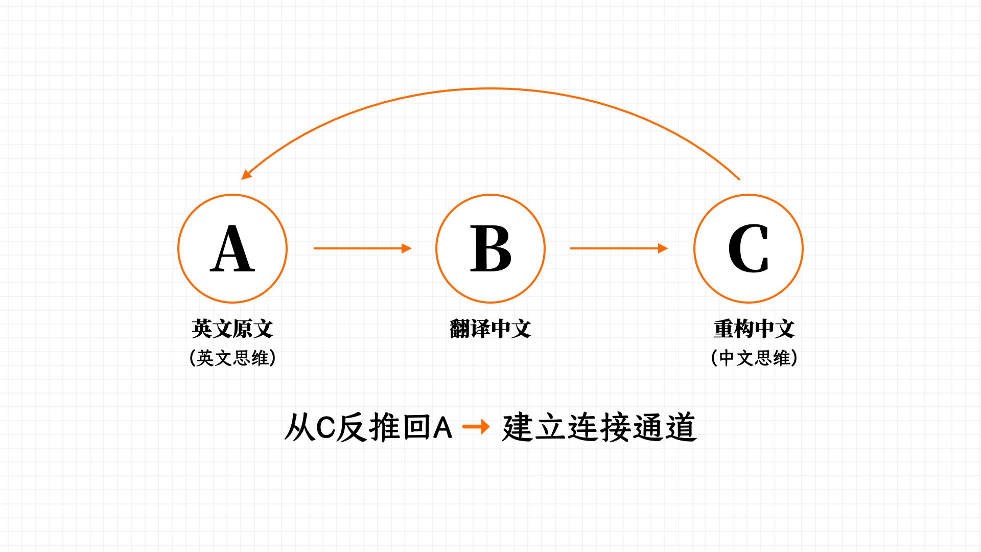 此时,经过重构的C 与 原文翻译B,在表达顺序、结构上都有明显的区别。