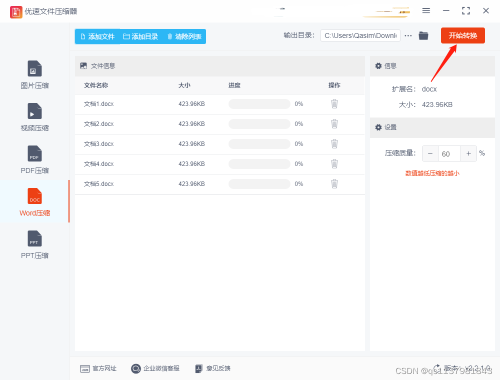 第四步:点击【开始转换】按钮,启动软件的压缩程序,当压缩结束后,系统会自动弹出打开输出文件夹,此时用户在输出文件夹里可看到压缩好的word文档。