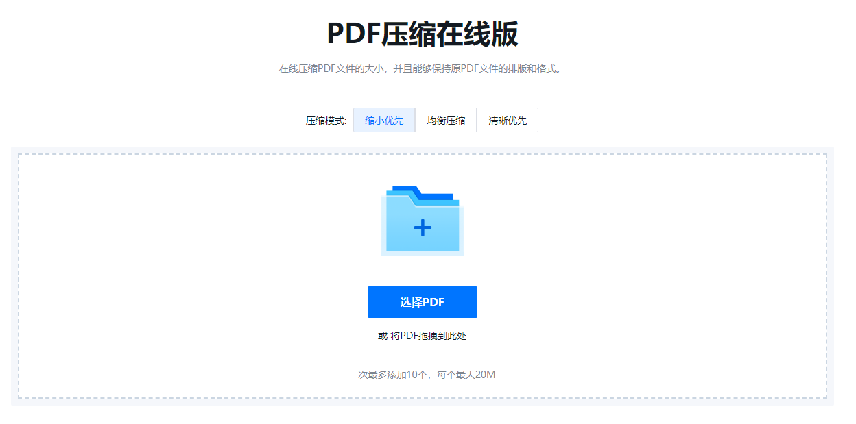 推荐使用迅捷在线压缩工具,快速压缩PDF文件大小,使用简单方便。