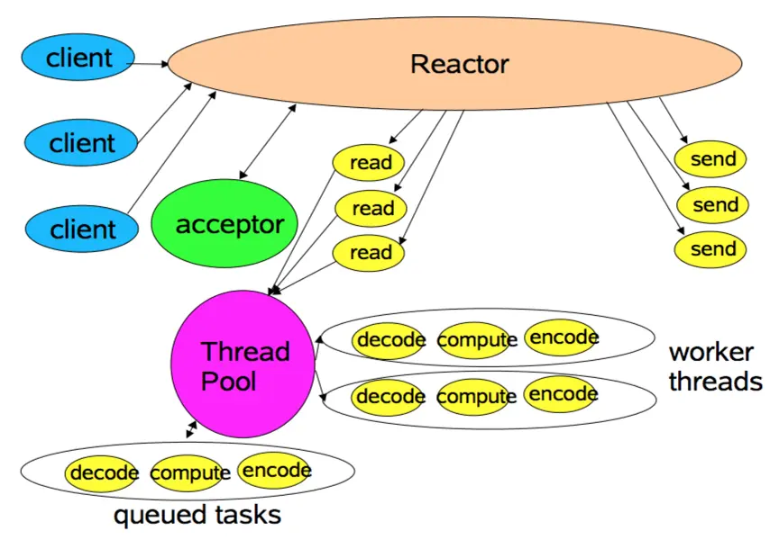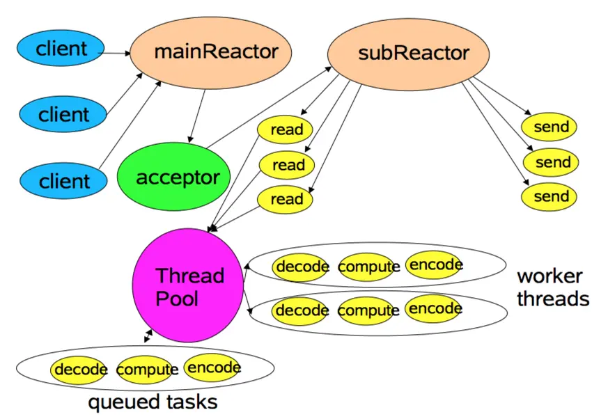 Acceptor 线程池仅仅只用于客户端的登陆、握手和安全认证,一旦链路建立成功,就将链路注册到后端 subReactor 线程池的 IO 线程上,由 IO 线程负责后续的 IO 操作。