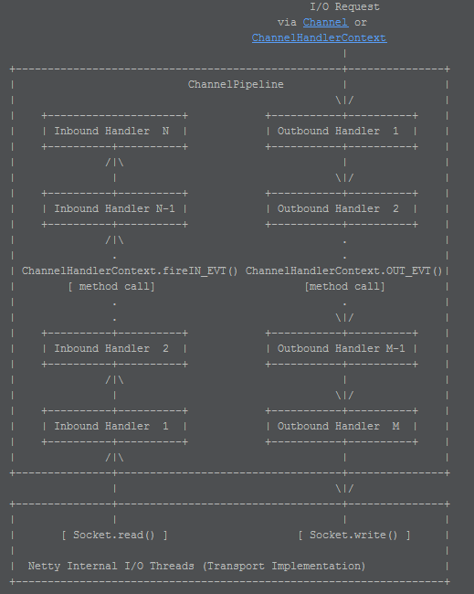 上图描述了 IO 事件如何被一个 ChannelPipeline 的 ChannelHandler 处理的。