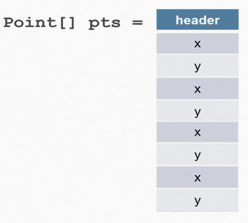 Valhalla引入的值类型有点向C#中的struct偷师的味道。值类型的想法是,像Point一类的对象,本质上是纯数据的聚合,只有数据,没有标识。没有标识意味着不再有多态性、可变性,不能在对象上加锁,不能为Null,只能基于状态做对象比较,但优势是: