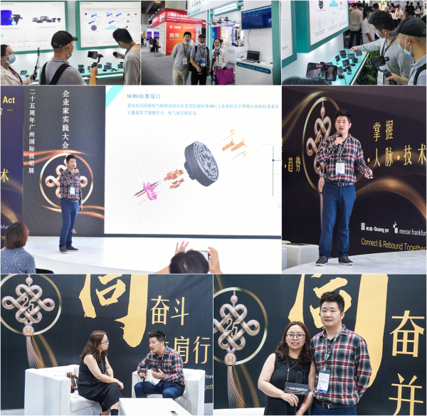 展会期间,中国之光网等多家媒体对优联智能的展出进行了现场直播和访问。在展会同期举办的“2020GILE大会论坛-企业家的思与行”活动中,优联智能的产品负责人朱祥辉先生还应邀出席《新机遇 5G+AIoT时代》论坛发表了《基于标准硬件接口的户外单灯照明系统解决方案》演讲。演讲就即插即用的户外照明硬件标准接口、智慧照明单灯控制器、智慧照明系统平台以及智慧照明的节能环保测算展开,向观众分享了在户外照明控制管理中普遍存在的痛点及解决方案,同时还对优联智能的软硬件产品进行了简单介绍。