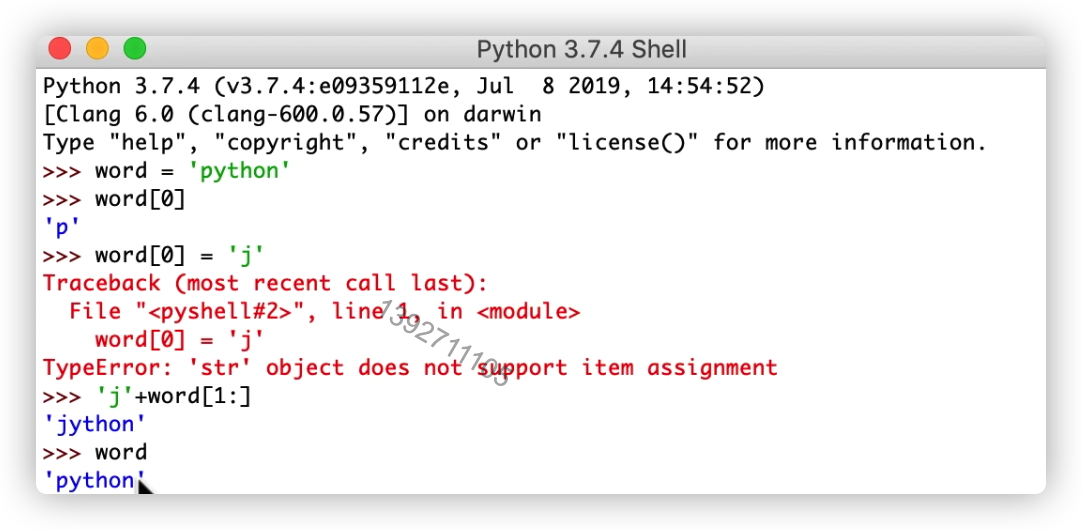 可以重新赋值,但不可以索引改变其中一个值,只能拼接字符串建立新变量