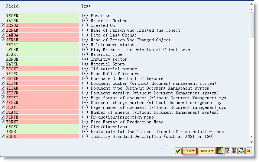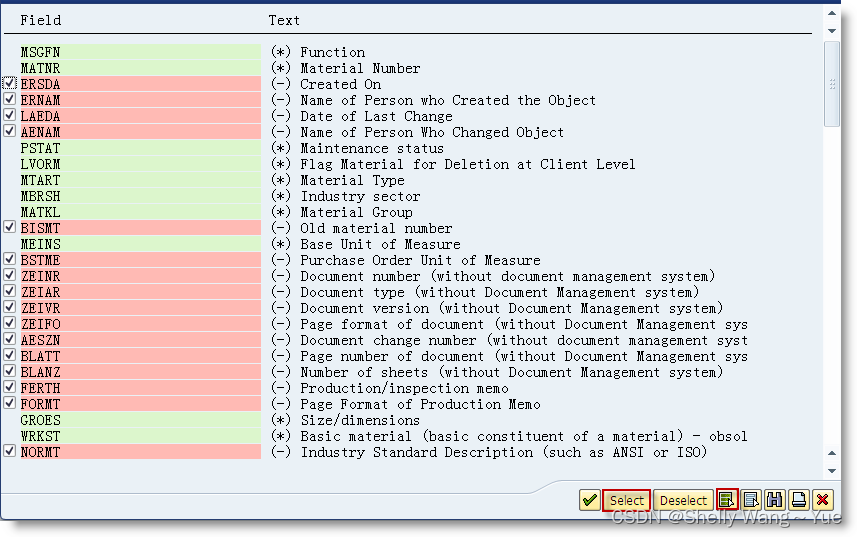 我现在需要把所有的字段都选择进来,所以先点E1MARAM,再点顶上的Select