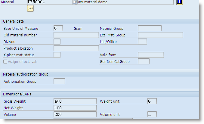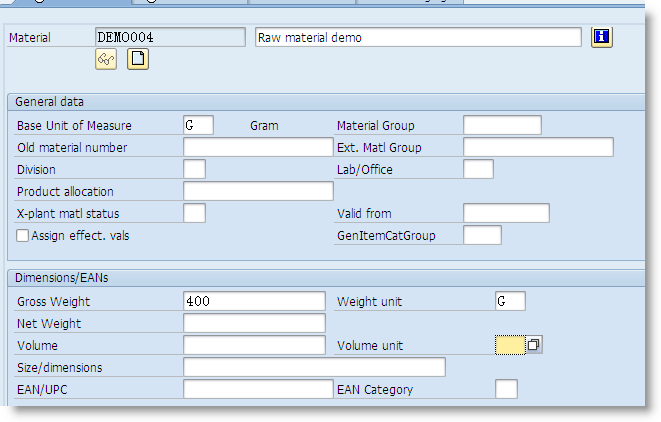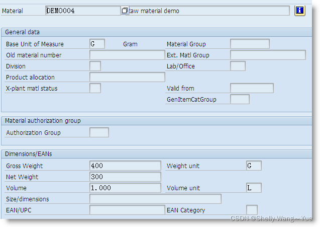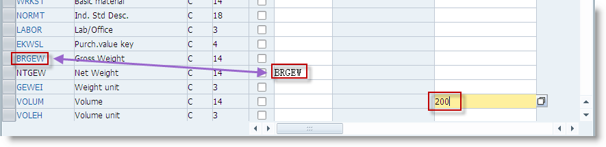 比如仍是这个DEMO004的物料,现在希望其净重等于毛重,而容量是个常量值200。