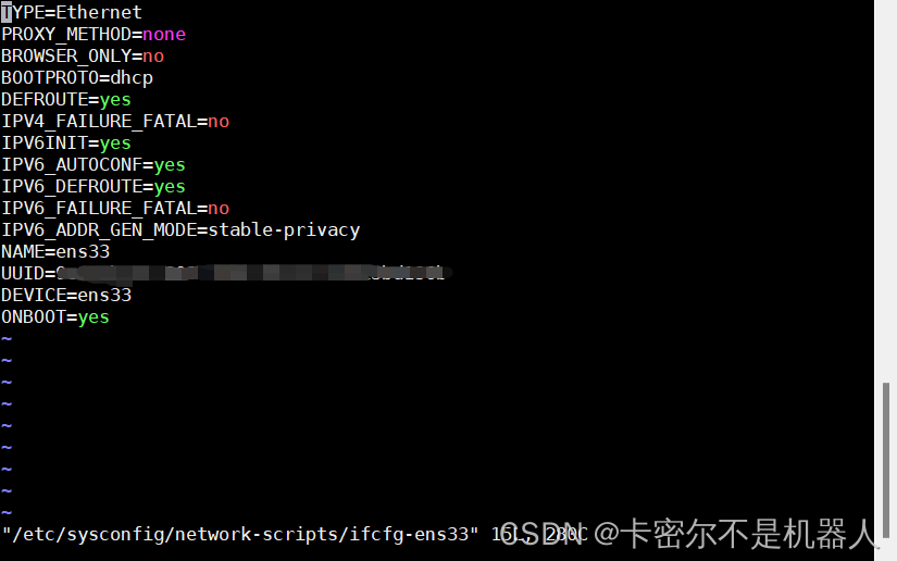 命令:vi /etc/sysconfig/network-scripts/ifcfg-XXX