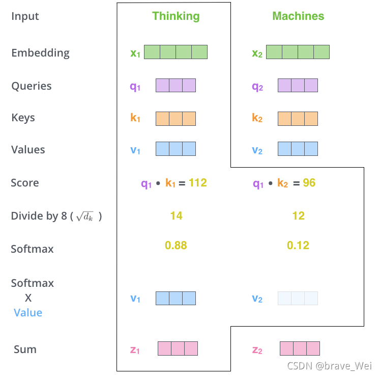 Lable={(xi,yi)},Unlabled={(xi)}.并且数量上,L< 单独使用有标记样本,我们能够生成有监督分类算法 单独使用无标记样本,我们能够生成无监督聚类算法 两者都使用,我们希望在1中加入无标记样本,增强有监督分类的效果;同样的,我们希望在2中加入有标记样本,增强无监督聚类的效果. 一般而言,半监督学习侧重于在有监督的分类算法中加入无标记样本来实现半监督分类.也就是在1中加入无标记样本,增强分类效果. SOTA State of The Art 在该领域最先进的模型 SOTA model:State-Of-The-Art model,是指在该项研究任务中,对比该领域的其他模型,这个是目前最好/最先进的模型。 SOTA result:State-Of-The-Art result,一般是说在该领域的研究任务中,此paper的结果对比已经存在的模型及实现结果,此Paper的模型具有最好的性能/结果。 BERT模型:BidirectionalEncoder Representations from Transformer 字向量+文本向量+位置向量(字词在不同位置的语义有差别,加上一个向量便于区分) fine-tunning范式 数据增强 EDA 同义词替换和回译 Self-attention Transformer模型 相当于一个黑匣子,将input的一种语言经过黑匣子转换output另一种语言 Transformer里面每个Encoders(input)分别有6个encoder,每个Decoders里面有6个Decoder、 encoder-decoder模型(编码-解码模型)按照我自己的理解encoder会把输入的信息编码成固定大小的向量,这个过程可能会对信息有一定的压缩损失。 每个encoder的结构一样,里面有两个子层Feed Forward Neural Network和Self-Attention,encoder的input首先通过self-attention层然后该层输出到Feed Forward Neural Network(前馈神经网络) 关于Transformer模型这篇文章写得非常详细非常好,我的整个理解也基于此,大家可以进去看看英文原版,细节满满:The Illustrated Transformer – Jay Alammar – Visualizing machine learning one concept at a time. Self-attention是Transformer模型中一非常重要的部分。 self-attention layer: a layer that helps the encoder look at other words in the input sentence as it encodes a specific word.用来帮助encoder找到输入语句中的其他单词。 Decoder也有那两层,不过还有一个encoder-decoder attention,不像那两层是基于multi-head attention layer的,它是用来帮助输出句子相关的部分(类似于seq2seq模型),这层的重点是masking,masking的作用是防止在训练的时候使用未来输出的单词。第一个单词是不能参考第二个单词的生成结果的。 Masking就会把这个信息变成0, 用来保证预测位置 i 的信息只能参考比 i 小的输出。 ransformer中的每个Encoder接收一个512维度的向量的列表作为输入,然后将这些向量传递到‘self-attention’层,self-attention层产生一个等量512维向量列表,然后进入前馈神经网络,前馈神经网络的输出也为一个512维度的列表,然后将输出向上传递到下一个encoder。 每个位置的单词首先会经过一个self attention层,然后每个单词都通过一个独立的前馈神经网络(这些神经网络结构完全相同)。 Self-attention 从每个Encoder的输入向量(每个单词)上创建三个向量:Query、Key、Value 1.Score计算 2.Divide by 8( 3.SOFTMAX 4.Softmax X Value 5.Sum 经过以上计算得到Self-attention层的输出,具体计算原理在此不深究。 上图是self-attention的矩阵计算原理 接下来看看解码器端Decoder 关于Self-attention中的encoder还有很多优化在此不赘述,论文里很详细。 Decoder主要是对输入向量的k和v进行操作解码 ,里面的层次和encoder差不多,不过里面有一个attention层帮助Decoder专注于输入句子中对应的词,类似于seq2seq model。 UDA大致分为两部分 fine-tuning和Evaluatio