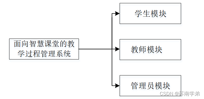 按照需求分析的要求我对本教学过程管理系统主要进行了模块设计,分为学生模块,教师模块和管理员模块。如图4-1所示。