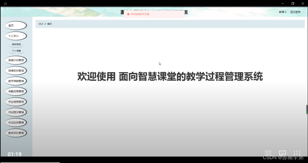 教师登录系统为教师操作界面,主要包括首页,个人中心,授课计划管理,换课安排管理,教学课程管理,考勤信息管理,作业信息管理,作业提交管理,作业批改管理,教学评价管理等功能;