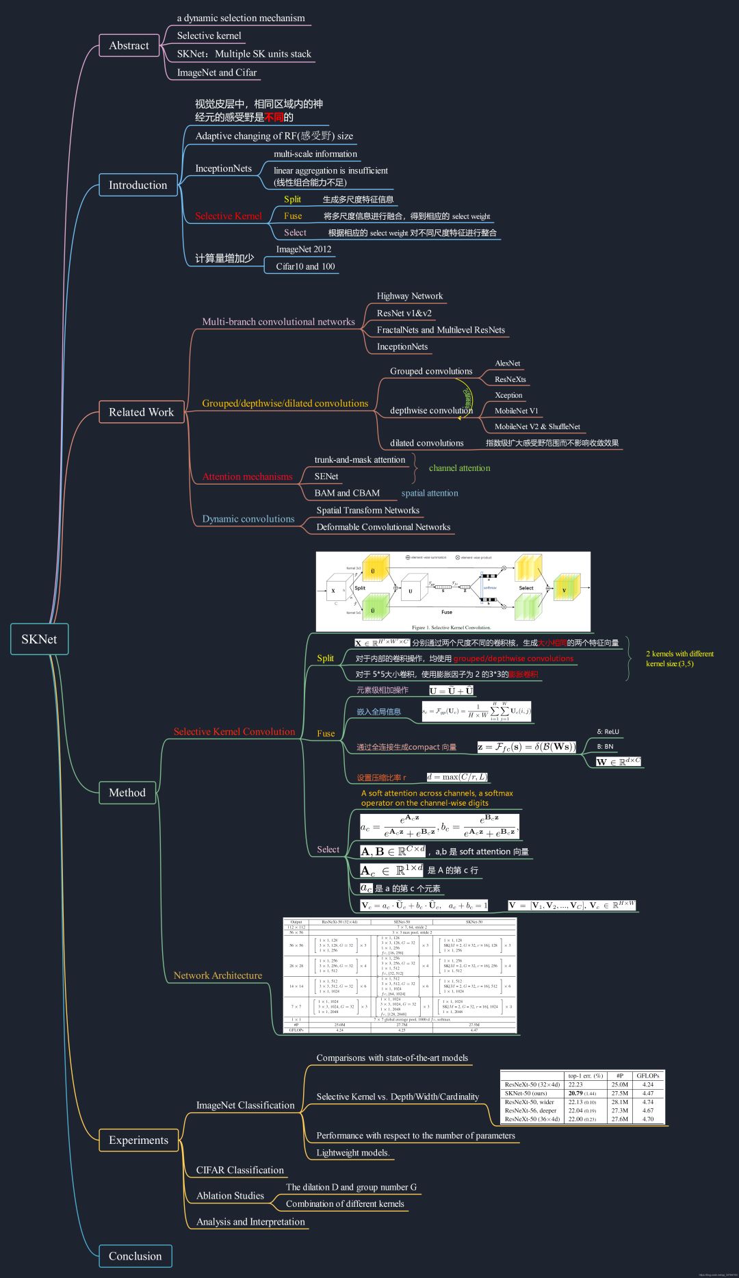 下图是针对 SKNet 总结的思维导图