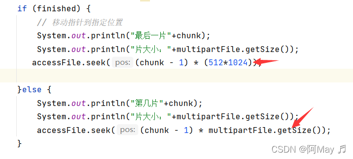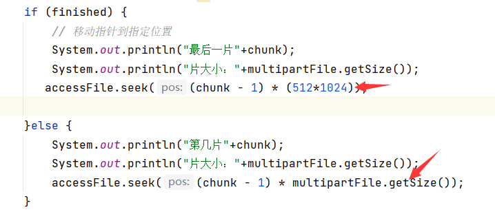 我开始是没有考虑最后一片的问题,因此最后一片通常是小于块长(512*1024),但是前n-1片是等于块长的,因此会出现错误,进行修改如上图后,我们可以成功上传分成多块的文件了: