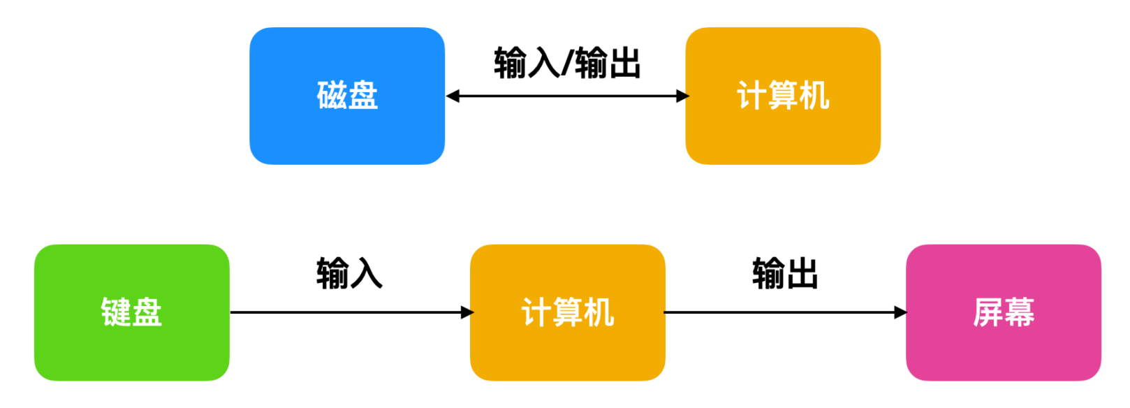 那么上面这个 输入 就可以接收来自任意类型的磁盘或者键盘,并且 输出 可以写入到任意类型的磁盘或者屏幕。