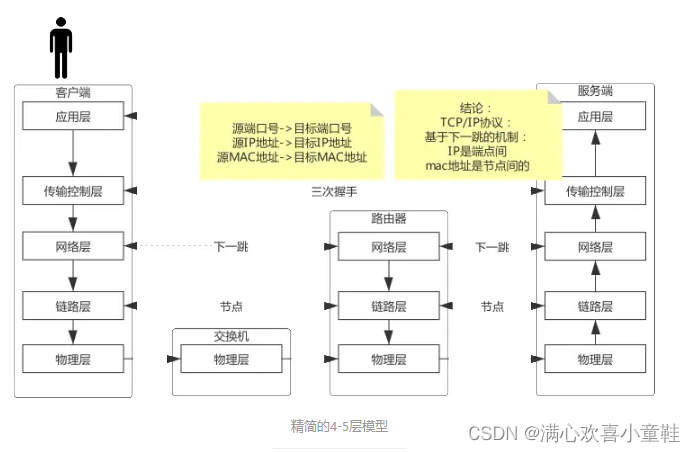 有了这些前置知识之后,我们可以多osi模型进行精简,就出现了下述的五层网络模型: