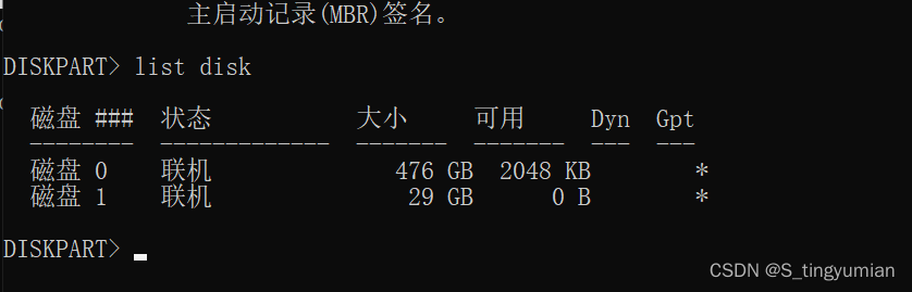 其中磁盘 1即为U盘,通过select disk 1选中该盘,然后执行clean清理命令(注意*:爱国者U盘可能有锁定开关,在锁定模式下无法执行清理操作)