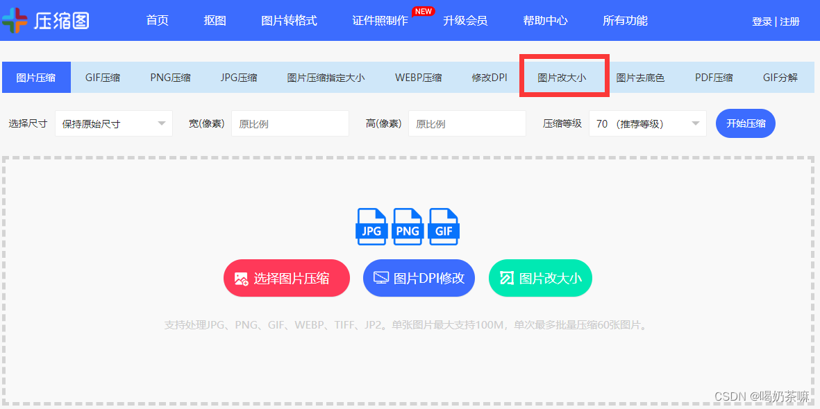 压缩图这款在线图片处理工具可以帮助您调整图片大小尺寸,只需上传您需要调整大小的图片,输入所需的尺寸,最后保存修改后的图片即可。