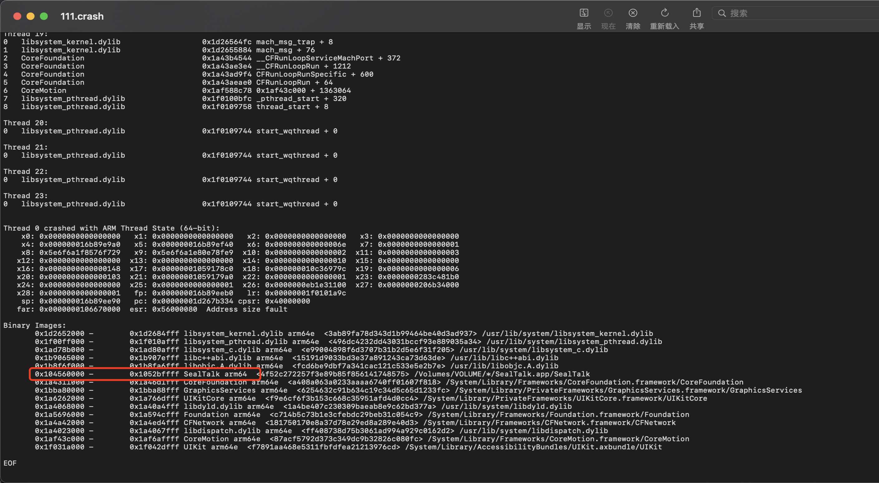 在.crash文件的最下边, 可以找到宿主app和动态库的基地址: