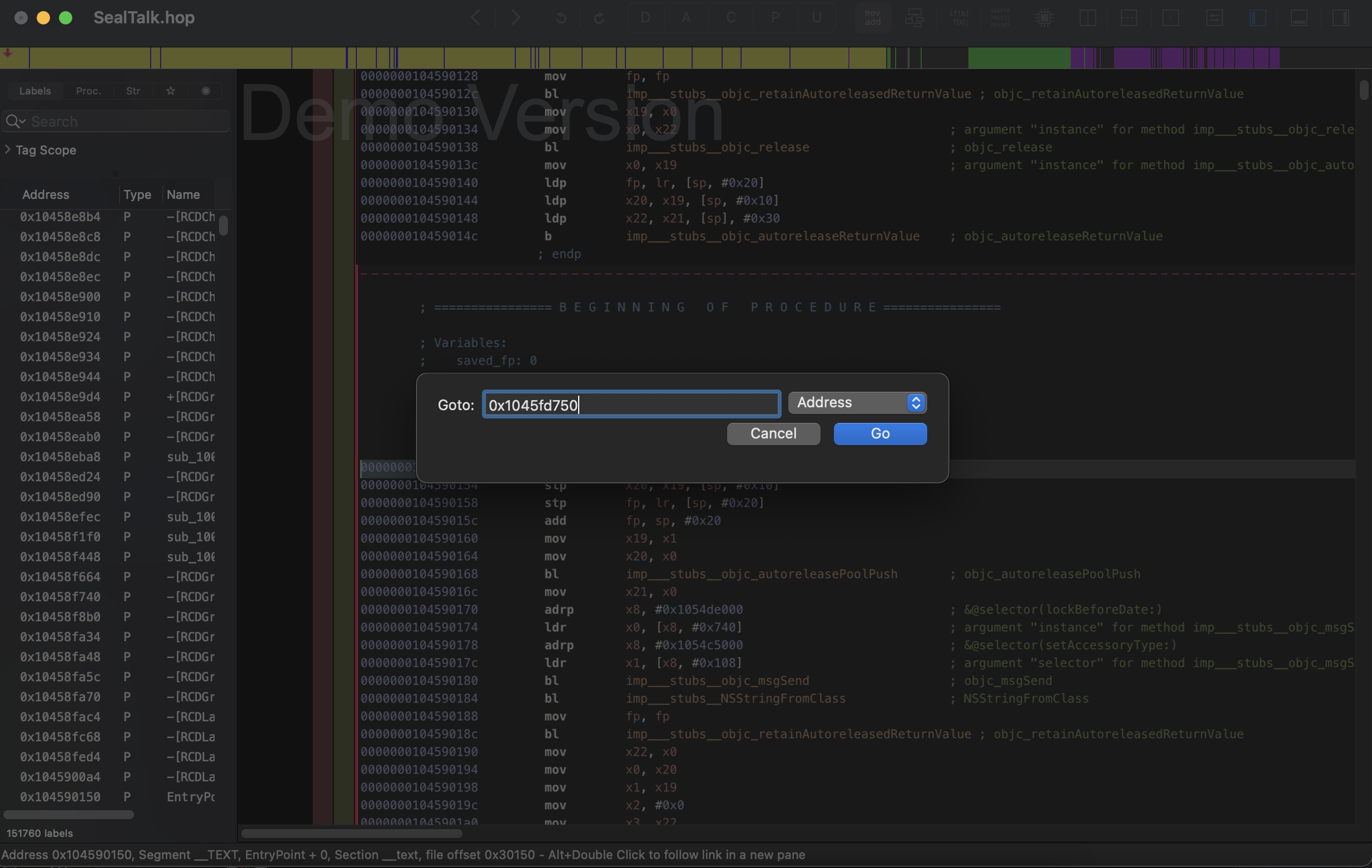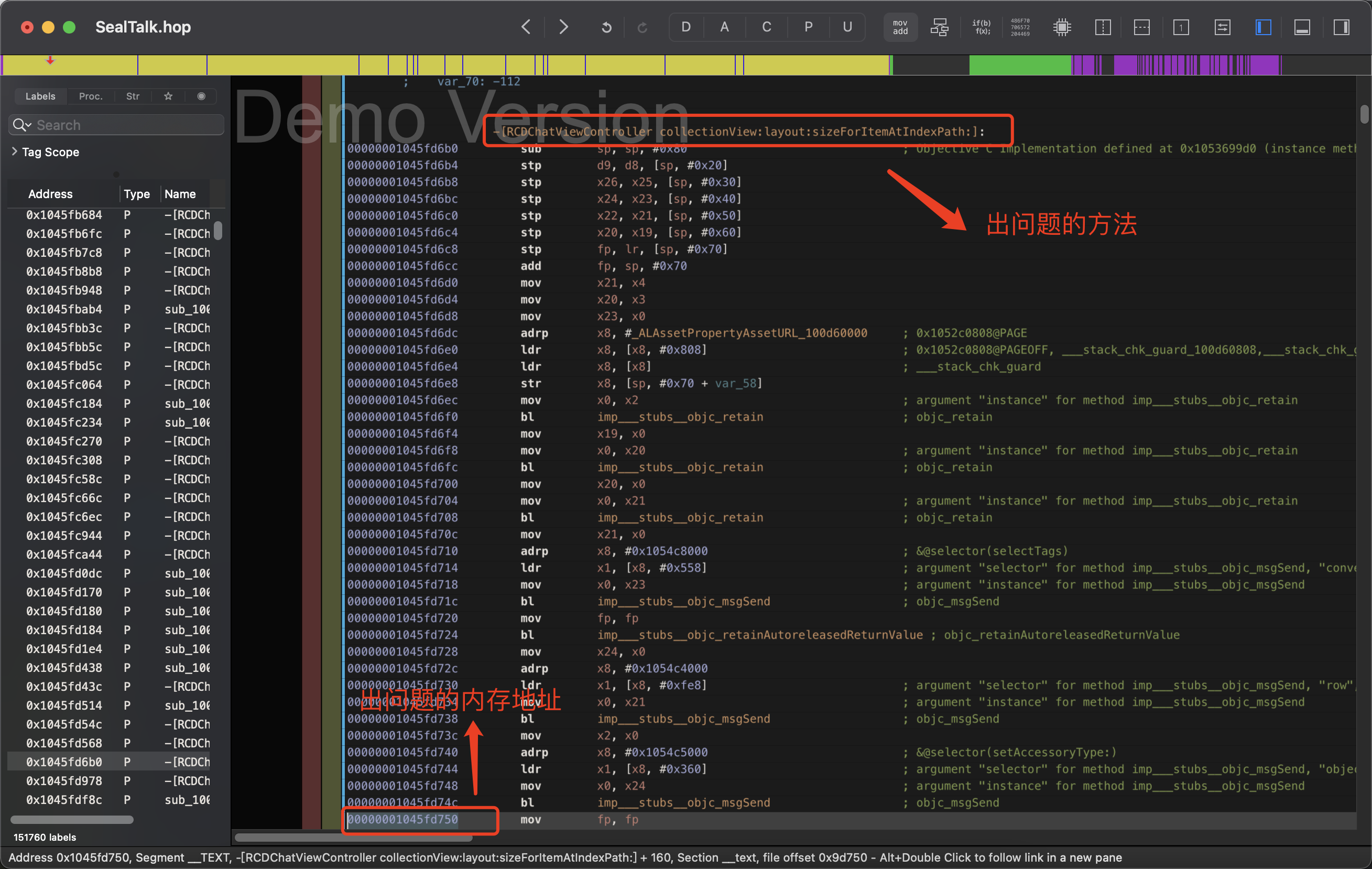 在hopper页面上, 点击按键"G", 输入出问题的内存地址, 点击"Go"按钮跳转