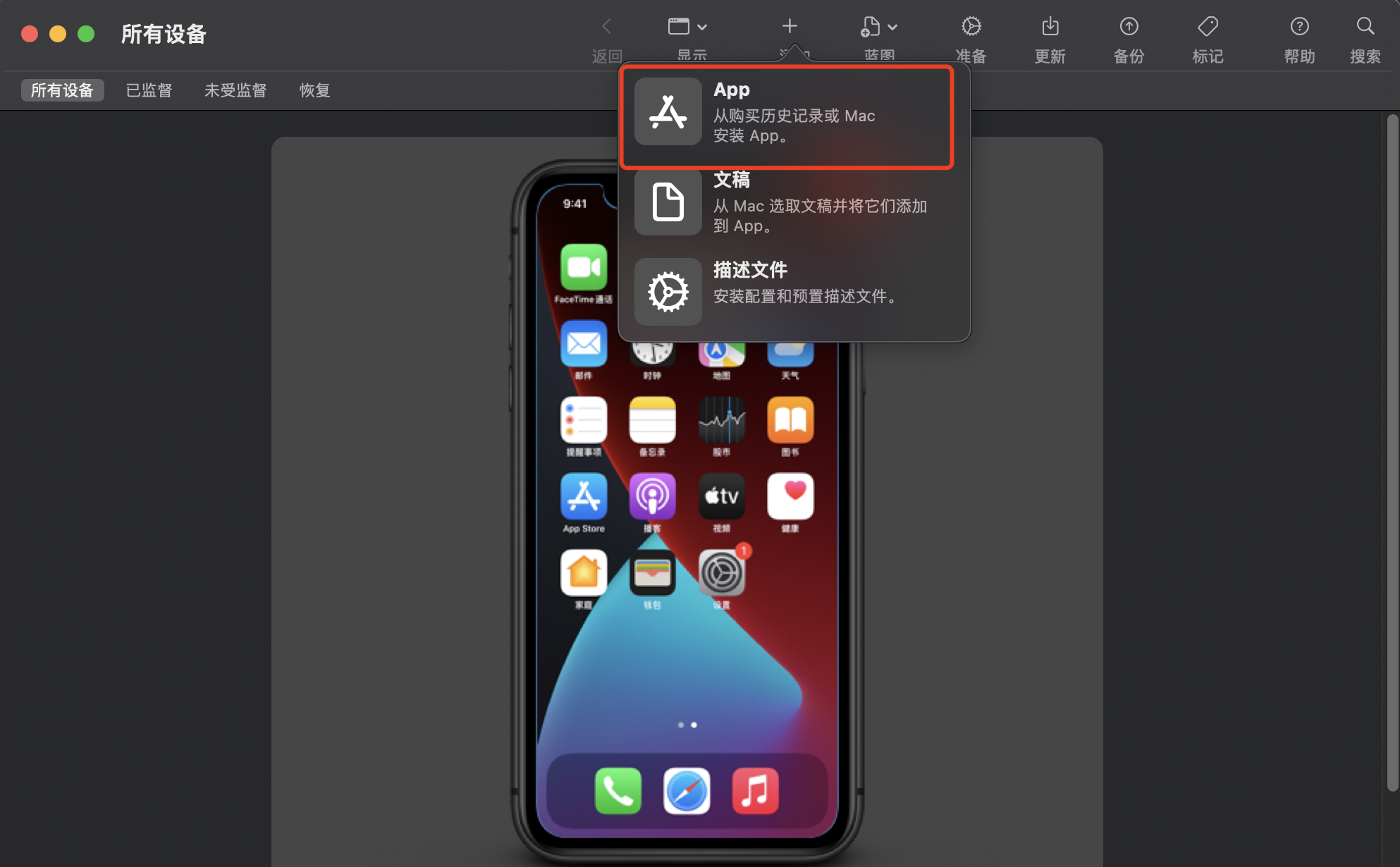 (1) 在Mac 上安装Apple Configurator 2, 并登入对应账号