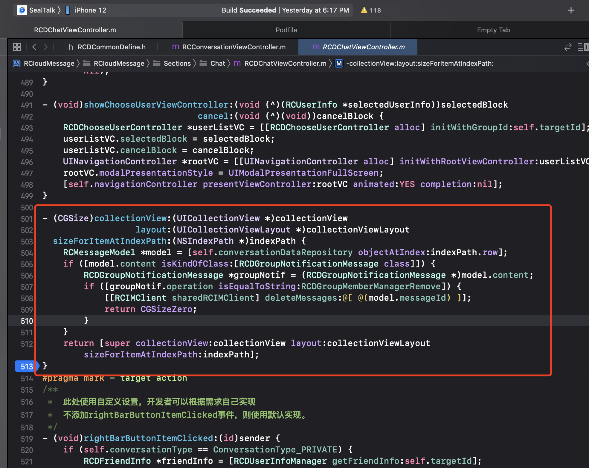 ` RCMessageModel *model = [self.conversationDataRepository objectAtIndex:indexPath.row];