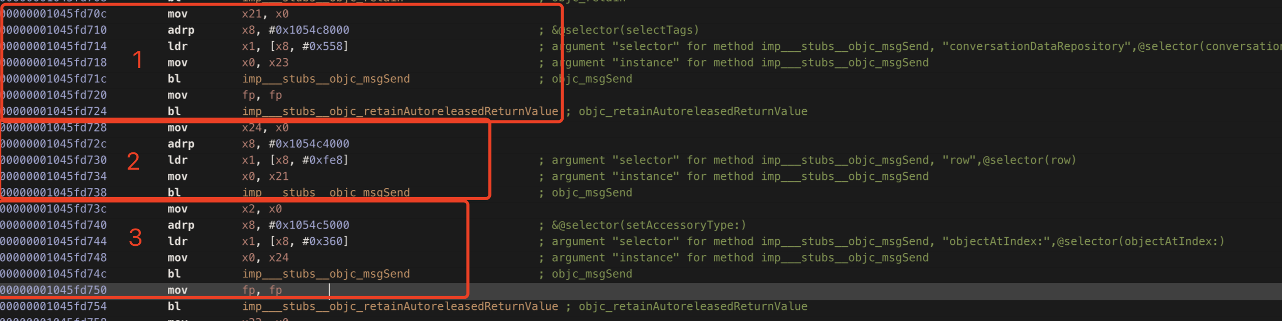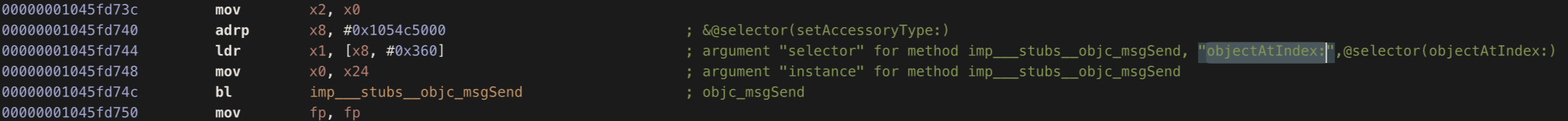 (5) 00000001045fd74c bl imp___stubs__objc_msgSend