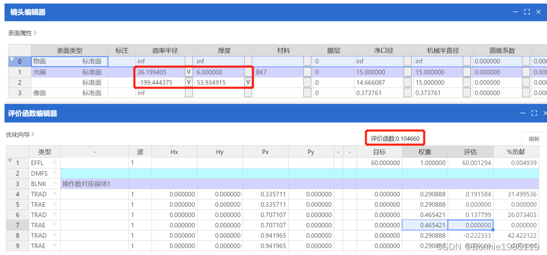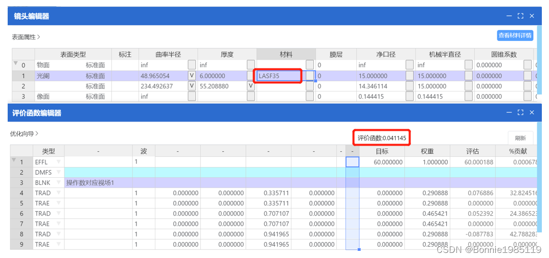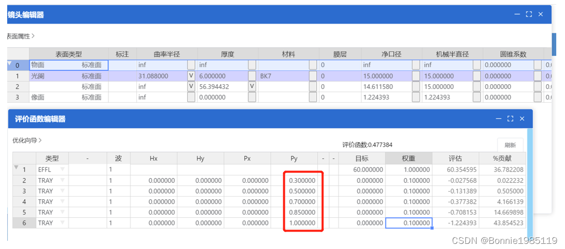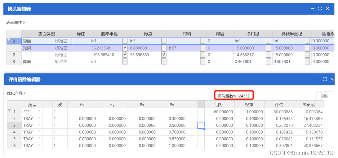 BK7折射率为1.5168,则 优化时把M求解设置为变量  优化前