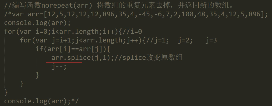 编写函数norepeat(arr) 将数组的重复元素去掉,并返回新的数组。