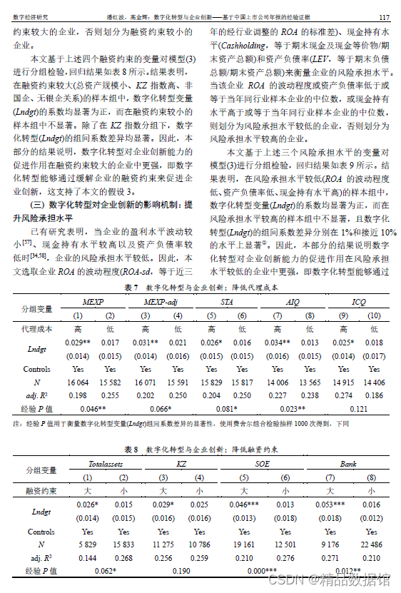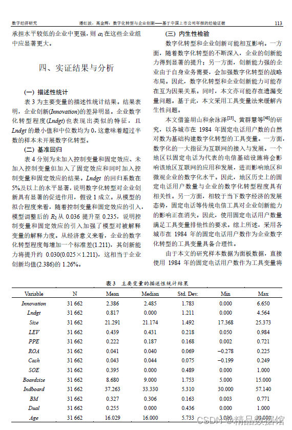 潘红波,高金辉.数字化转型与企业创新——基于中国上市公司年报的经验证据[J].中南大学学报(社会科学版),2022,28(05):107-121.