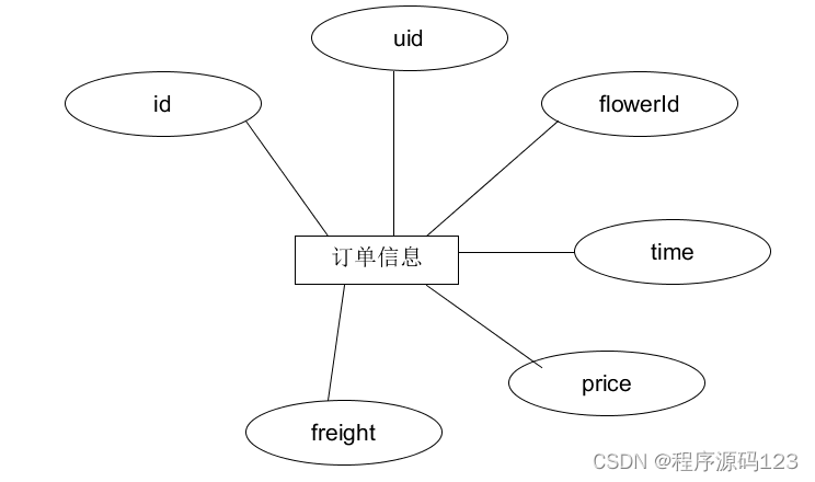 图2-7鲜花信息E-R图 (6)订单信息E-R图,如图2-8所示: