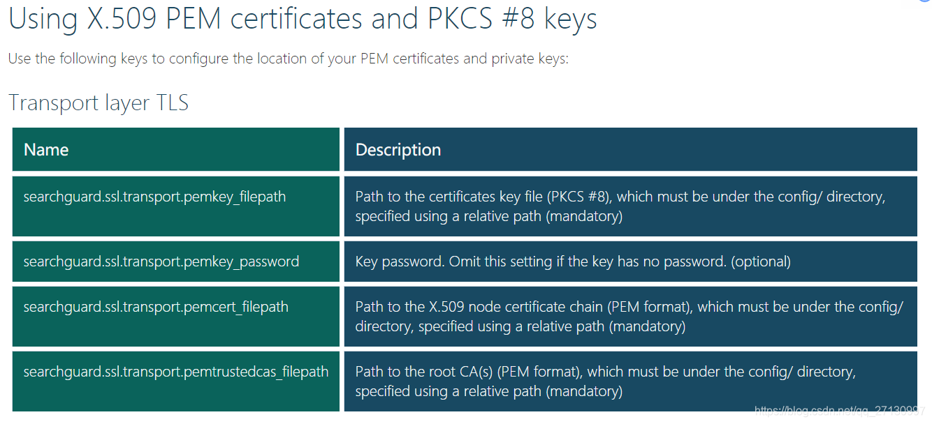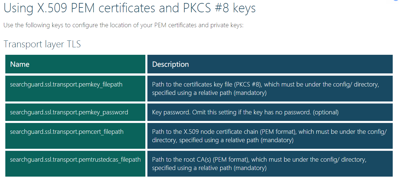 贴一个图,是searchguard 在配置 TLS 的时候配置的说明,假如你不了解x.509的证书链的话,你会不知道如何把手里的证书和配置对应清楚