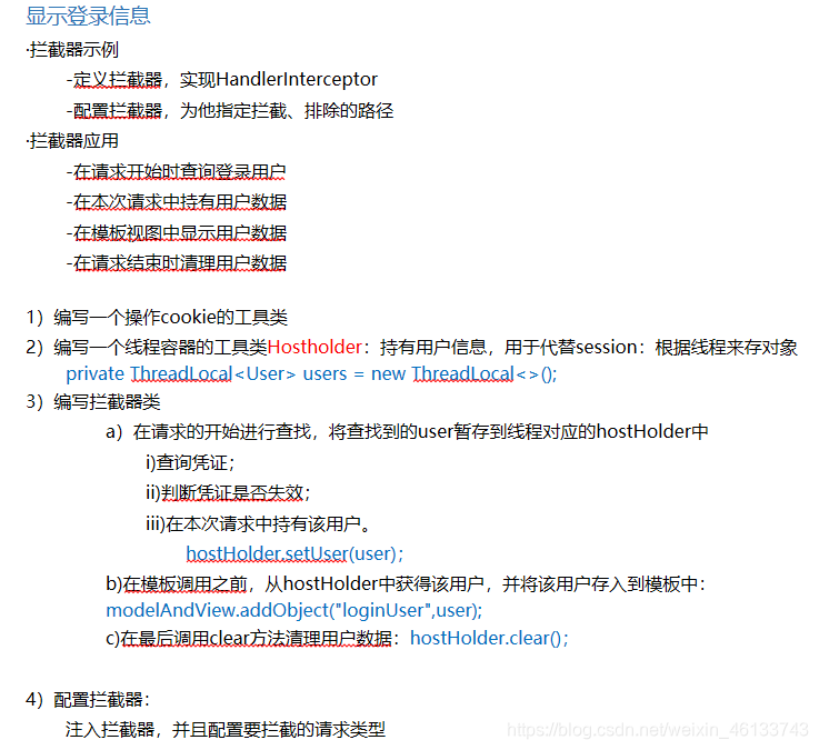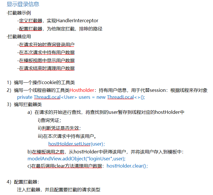 5、使用拦截器显示登录信息:通过cookie获得ticket,通过ticket获取loginticket对象,进而获得loginticket。