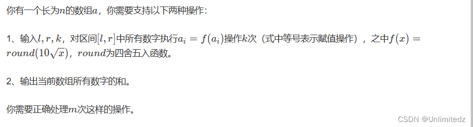 思路:首先对于这题,我们验证一会可以发现,当某个数经过少量的操作次数后,可以得到f(x)=x,于是我们可以用set去记录,题目中k最大是1e9,但是上文中也曾提到,我们根本用不到这么多次操作,经过计算可以发现,最大的操作是20,而且数组长度最大是1e5,所以最大的计算量为1e7,不用怕超时,然后对于求和这个操作,我们可以先减去这个数,然后对x进行f(x)的操作,最后加上x。最后如果x的值不变了,就将其从set中除去。