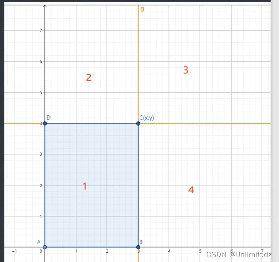 思路:分类讨论点位于1,2,3,4四个区域的情况。