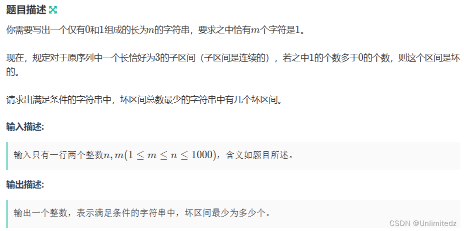 思路:通过列举样例我们可以找到类似的规律,我们可以将整个字符串进行100100100......类似的进行排列,然后将多余的1排在最后,计算最后那一部分的坏的字符串即可。