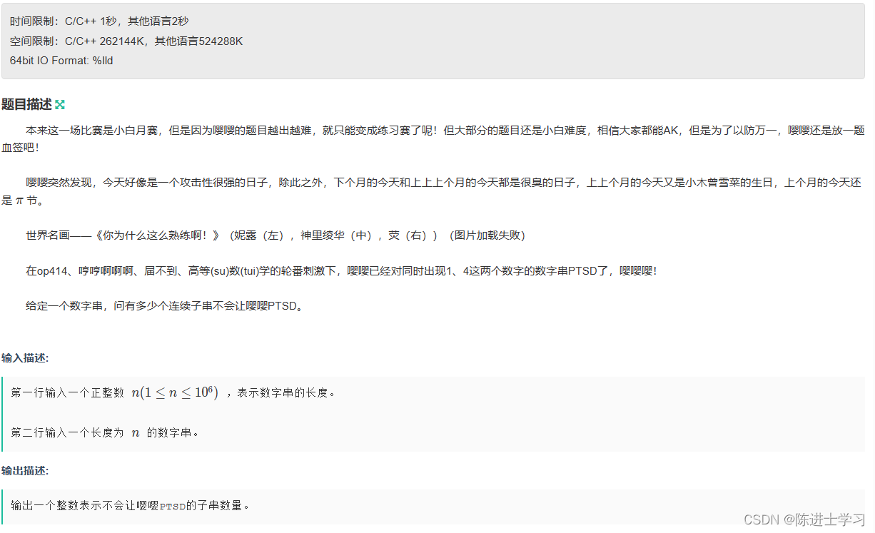 "4","1","4"这三个子串不同时包含1和4。 "41","14","414"这三个子串都同时包含了1和4。 所以答案是3。