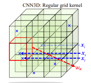 这是最常用的卷积,但是图片是一个regular的input,而3D数据是irregular的,如果直接将2D卷积使用在3D的input中,会使得模型泛化能力较差,即使当今很多模型,如DGCNN,有一些spatial transform,或者说直接抛弃卷积,使用attention代替,但是CNN提取cv特征的能力是毋庸置疑的,于是,文章便提出了一种在3D数据利用Spherical Kernel进行卷积的网络。