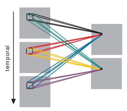 (不同颜色表示不同卷积核,图一表示每两帧使用同一卷积核,图二表示每帧使用两个卷积核)