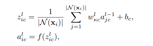 的邻域点,将所有更新的feature进行求和求平均,再经过一个非线性激活,就得到中心点新的feature了。
