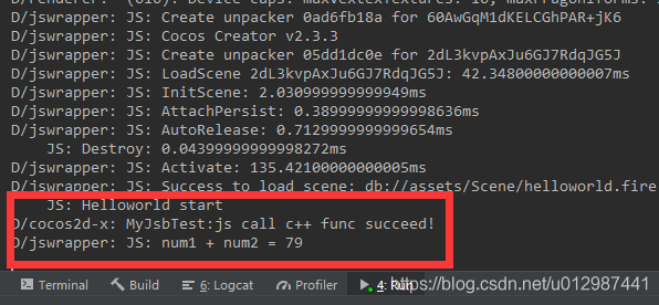 4:保存脚本,用CocosCreator重新构建,构建成功之后分别用VS2015和AndroidStudio运行起来。