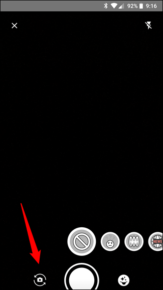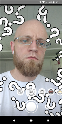 此外,Android提供了可以添加到GIF中的不同场景。 这些可以通过快门按钮右侧的按钮进行访问。 然后,您可以通过轻按快门按钮上方显示的各种选项来循环浏览场景。