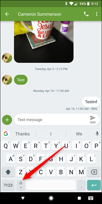 在打开文本框的情况下,点击表情符号按钮。 它可能是专用的按钮,但也可能是长按逗号的按钮,这完全取决于键盘的设置方式。