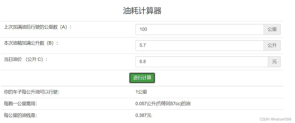 显示效果:油耗计算器