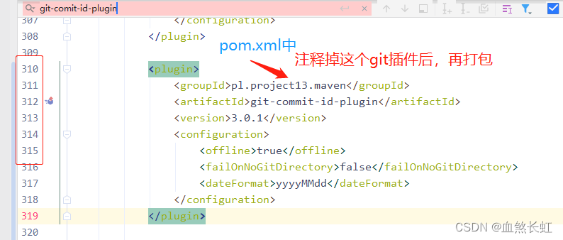 说明:该插件是git做版本控制相关的,打jar包时,如果它报错,完全可以先注释掉它。