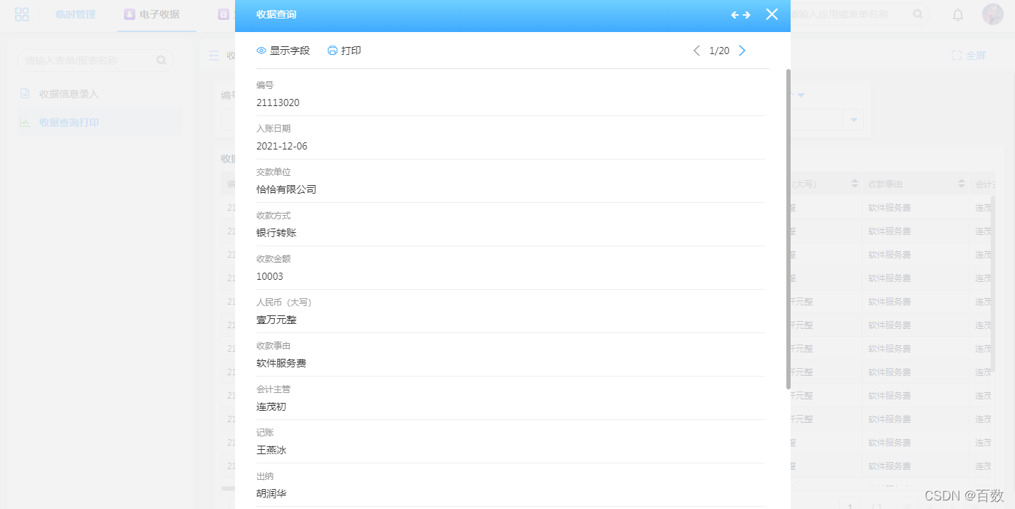 在提交成功的收据信息报表中,可以直接一键选择打印按钮,将自动匹配收据格式,确认无误后即可直接打印。